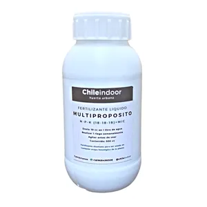 Fertilizante hidropónico líquido concentrado para preparar 200 litros de solución nutritiva. Dosis de aplicación 2,5 cc de cada fertilizante concentrado en 1 litro de agua, siempre agitar antes de usar. Con controlador de ph de 250 cc. Esta solución hidropónica puede emplearse en cualquier sistema hidropónico para producción de hortalizas de hoja. Debes considerar usar el controlador de ph si el agua que emplearás tiene ph superior a 7,2. Instrucción de preparación para solución nutritiva (para preparar 200litros de solución nutritiva): paso 1. Agitar las botellas que contienen la solución concentrada tipo a y tipo b. Paso 2. En 150 litros de agua, agregar los 500 cc de la botella tipo a y 500cc de la botella tipo b. Agitar el agua del estanque para homogenizar la solución. Paso 3. Agregar agua hasta completar los 200 litros. Paso 4. Controlar el ph de la solución nutritiva agregando nuestros productos para bajar o subir el ph de la solución nutritiva. El ph óptimo está en un rango óptimo entre 6 y 6,8 (si tienes un ph de 7,4 debes aplicar 14cc en 200 litros de solución nutritiva). Paso 5. Agitar la solución nutritiva, se recomienda realizar esto con la misma bomba impulsora. Concentración de nutrientes de la solución nutritiva en ppm (mg/l). Nitrógeno (n) : 150 ppm. Fósforo (p) : 50 ppm. Potasio (k) : 180 ppm. Calcio (ca) : 160 ppm. Magnesio (mg) : 35 ppm. Azufre (s) : 30 ppm. Hierro (fe) : 1,5 ppm. Manganeso (mn) : 0,5 ppm. Boro (b) : 0,5 ppm. Zinc (zn) : 0,15 ppm. Cobre (cu) : 0,1 ppm. Molibdeno (mo) : 0,05 ppm.