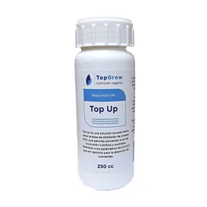 Pack Controladores de pH: 1 Top Down 250 cc para bajar pH y 1 Top Up 250 cc para subir pH. TOP DOWN es un producto que permite disminuir el pH de tu solución nutritiva a los parámetros óptimos (5,5 a 6,5) donde todos los nutrientes son disponibles para la planta. La principal ventaja de este controlador de pH es el aporte de nitrógeno, lo que favorece el desarrollo y crecimiento vegetativo. TOP DOWN permite ajustar el pH de manera rápida en cualquier tipo de sustrato y cultivo, sin dañar los microorganismos presentes en el sustrato, favoreciendo una óptima absorción de los nutrientes. Sólo una solución nutritiva con el pH apropiado garantiza que la planta absorba nutrientes en la proporción adecuada. Esto entonces tiene un efecto estimulante sobre el metabolismo, de modo que la planta crece más rápido. Este producto no afecta los microorganismos como bacterias u hongos benéficos del sustrato aportando potasio a tus plantas, desbloquea nutrientes dejándolos asimilables evitando carencias y es 100% soluble. Top Up es una solución acuosa hecha a base de Hidróxido de potasio KOH, que permite aumentar el pH de la solución nutritiva y sustratos, llevándolo a los parámetros de 5,5 a 6,5 que son óptimos para la absorción de nutrientes. La principal ventaja de este controlador de pH, es un líquido regulador para subir el pH a base de ácidos húmicos, dando aportes de macro y micronutrientes necesarios para todo el periodo de cultivo.